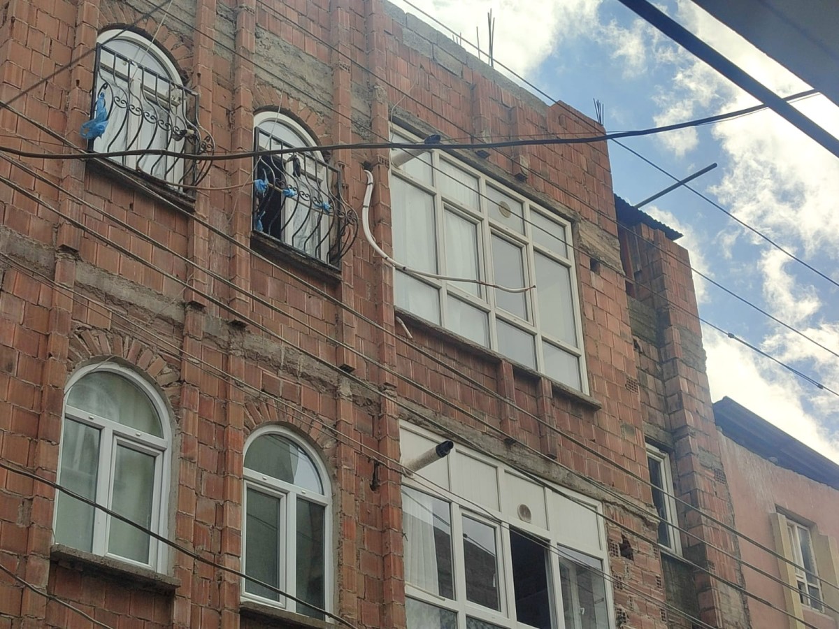 göre, 2141 Sokak üzerindeki binada bir daireye klima takan 15-6 yaşlarındaki işçi klima hortumunun binanın önünden geçmekte