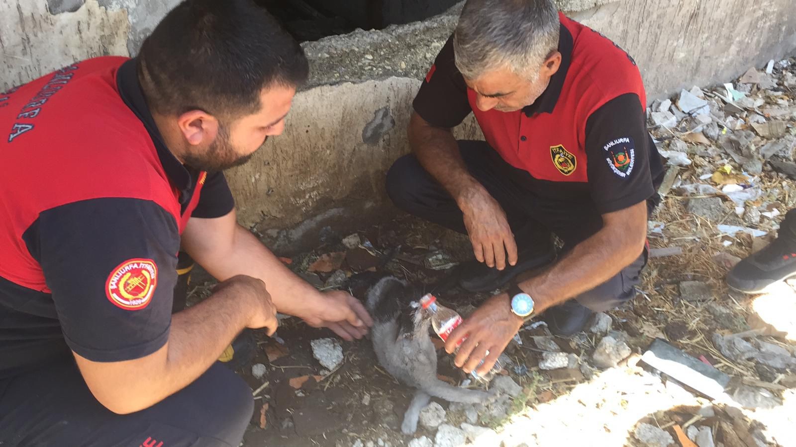 bir kediye ilk müdahaleyi de itfaiye ekipleri yaptı.