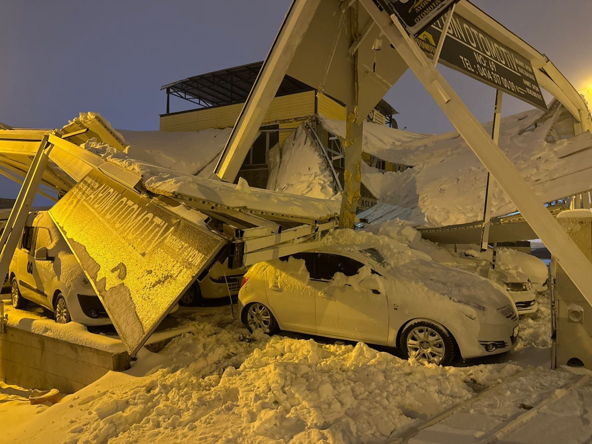sitelerin çatıları ile oto galericilere ait tenteler çöktü. Olaylarda can kaybı