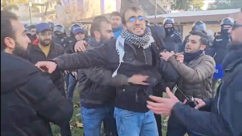 gruptakilerin ise sloganlarla karşılık verdiği gözlendi.