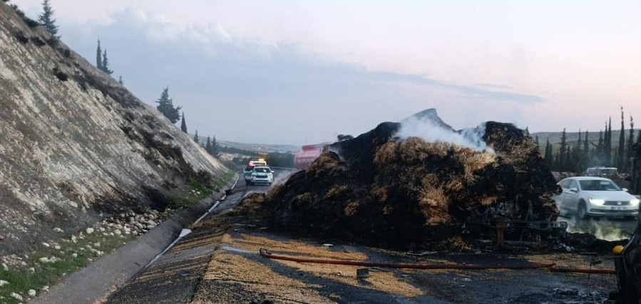 çıkan TIR yan yatarken, araç kısa sürede alev aldı.İhbar üzerine kaza yerine sağlık, itfaiye ve jandarma