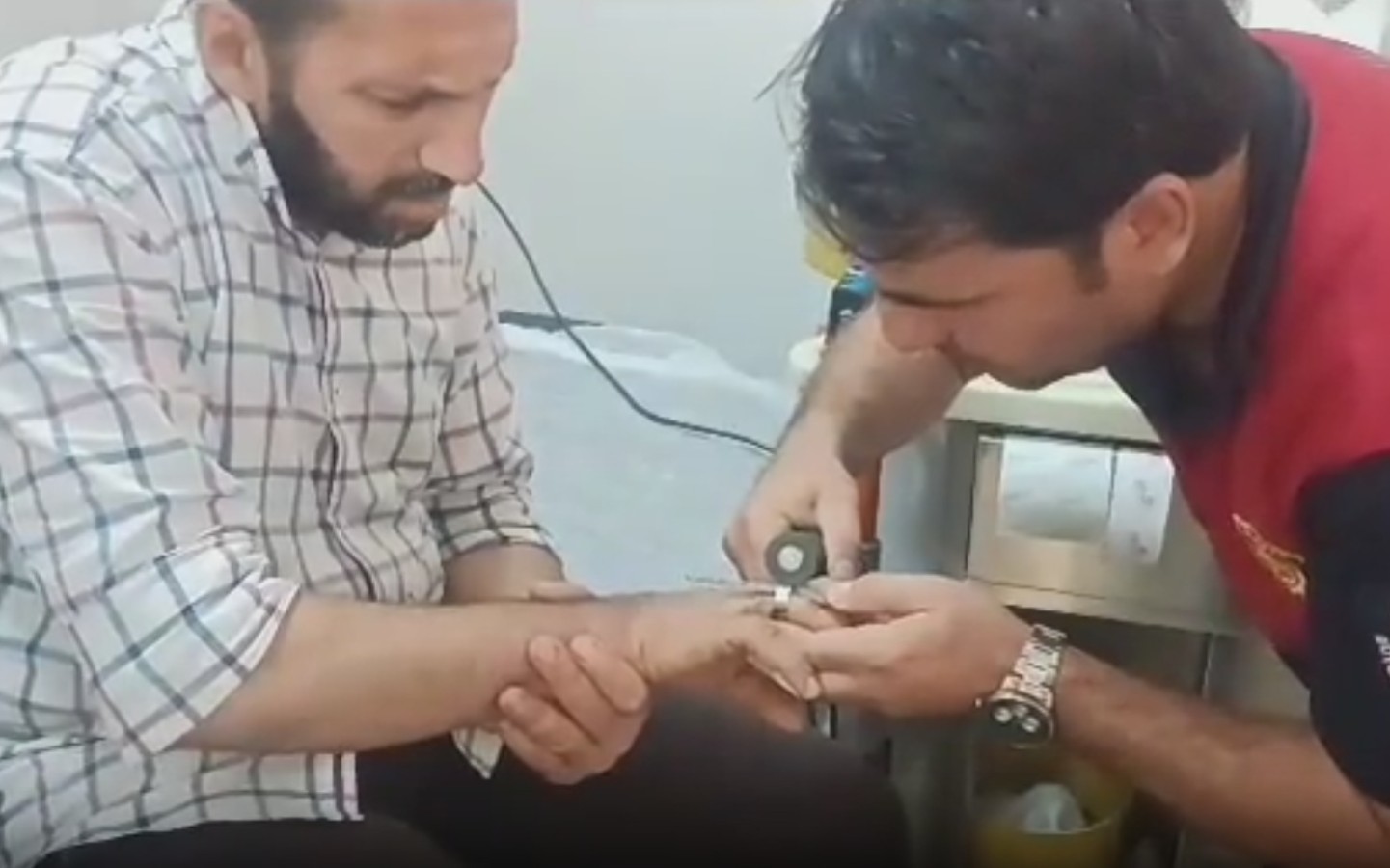 Şanlıurfa’da bir şahsın parmağına sıkışan yüzük, itfaiye ekiplerinin yoğun çabası sonrası kesilerek çıkarıldı....