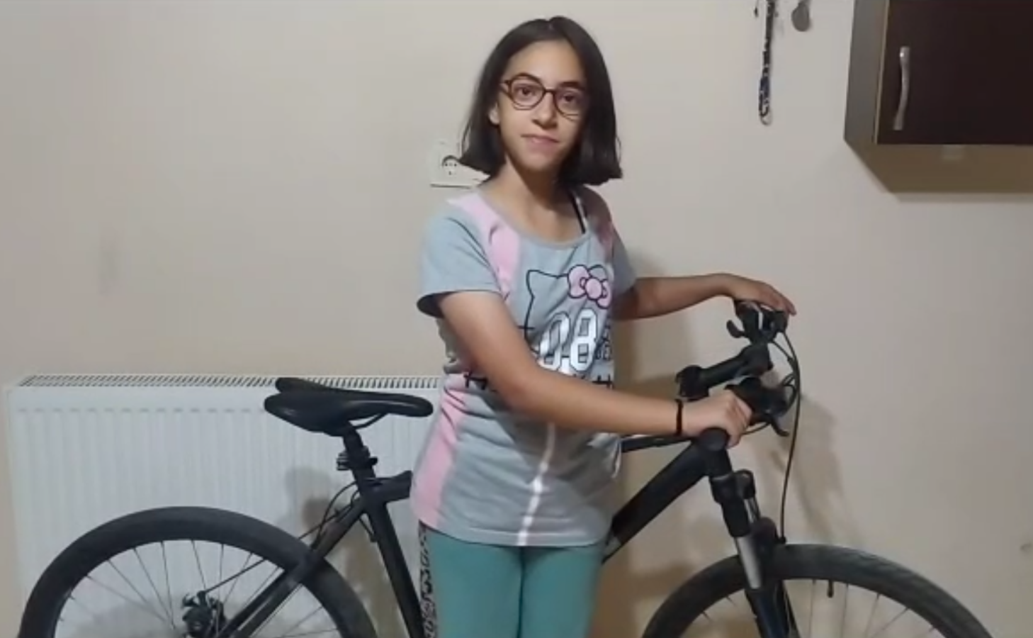 Bisikletine kavuşan Şeyma Usanmaz mutlu olduğunu