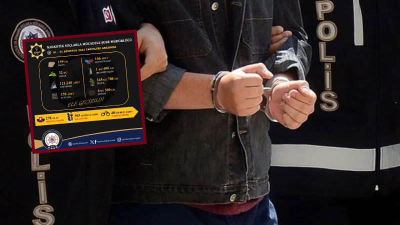 ŞANLIURFA - İl Emniyet Müdürlüğü Narkotik Suçlarla Mücadele Şubesinin kentte 1-31 Ağustos tarihleri arasındaki operasyonlarının bilançosu açıklandı.