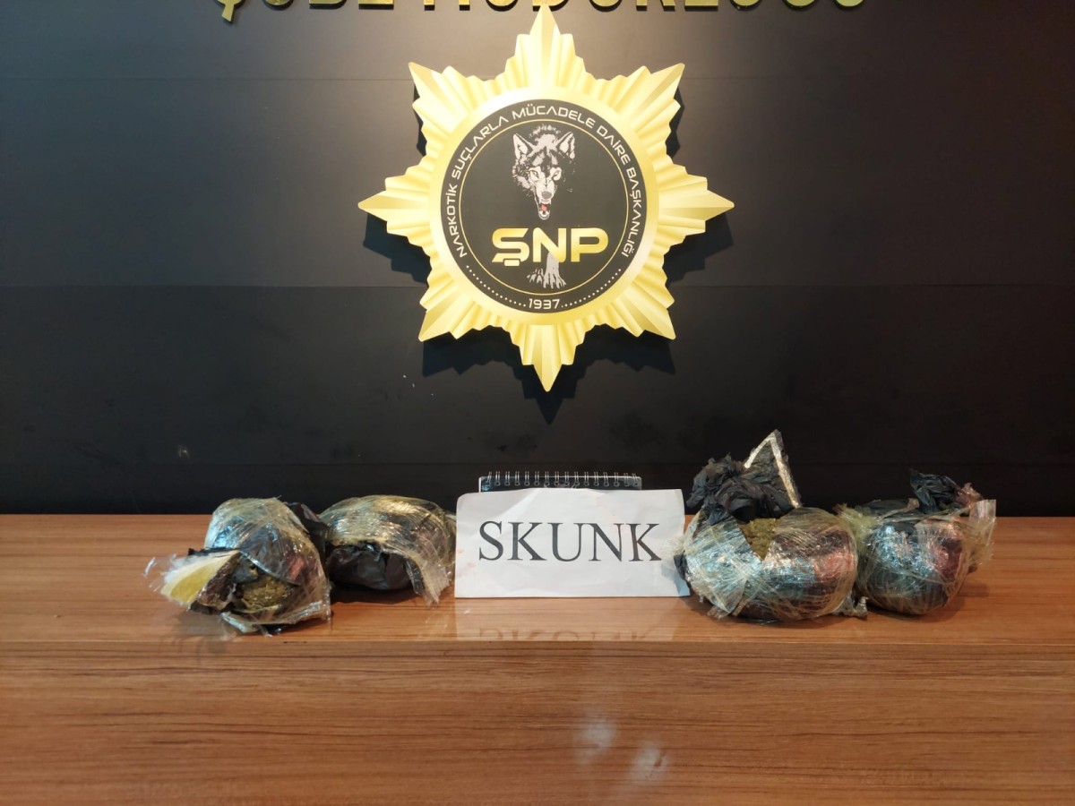 araç içerisinde 2 kilo 950 gram kimyasal uyuşturucu (skunk) ele geçirildi.