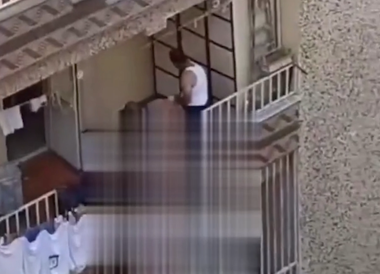 balkonunda şiddet uyguladığı görüntüler bir vatandaş tarafından cep telefonuyla