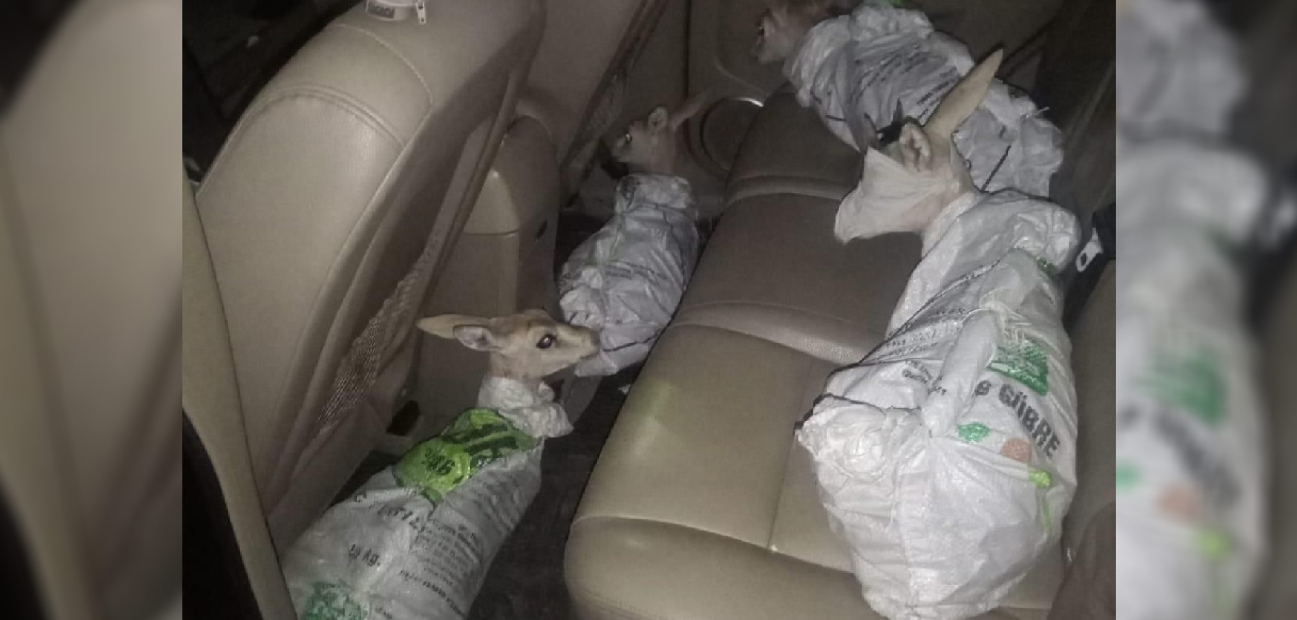 İ.D. R.A. ve M.D. isimli şahısların bulunduğu otomobil durduruldu ve arama yapıldı. Aramada doğadan yakalanmış ve çuvallara sarılmış, gözleri bağlı durumda 4 yaralı ceylan yavrusu bulundu.