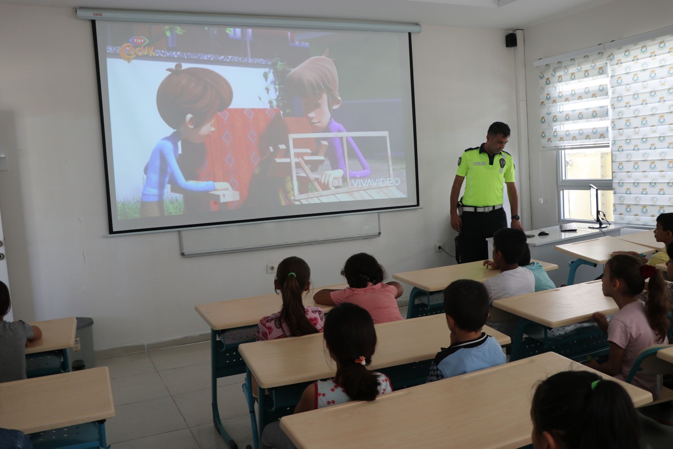 Eğitim Parkında görevli trafik polisleri tarafından eğitim verilen miniklere;