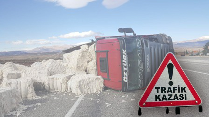 Şanlıurfa’da pamuk yüklü kamyon devrildi