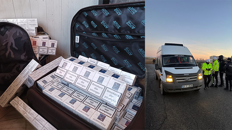 paket kaçak sigara ve 8 kilogram kaçak çay ele geçirildi.