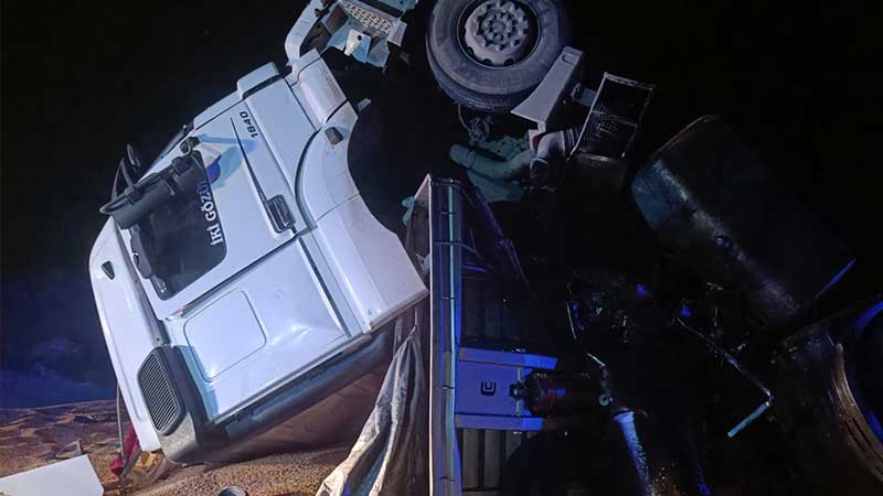 plakalı makarna yüklü tır kafa kafaya çarpıştı.