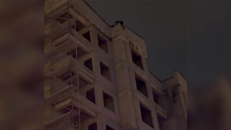 bilinmeyen nedenle bir kişi, bir binanın en üst katına çıktı.